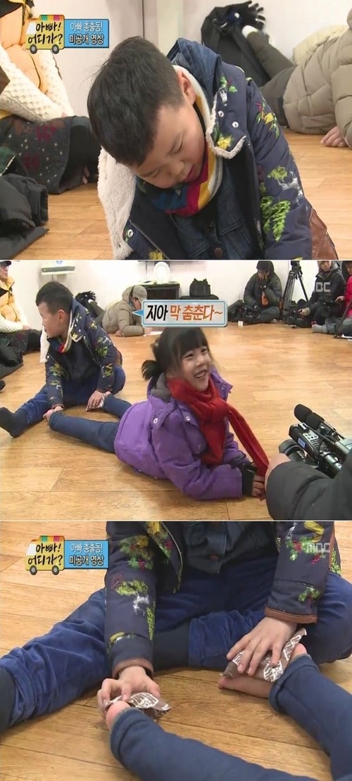 그는 지아에게 "따뜻하지?"라며 "발 따뜻하게 할 때까지 못가"라고 지극정성 애정을 표현해 웃음을 자아냈다.