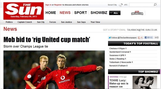 맨체스터 유나이티드가 유럽 축구계를 뒤흔든 승부조작 파문에 휩쓸렸다. 승부조작 팀들이 맨유에 최소 3점 이상 차이로 패하는데 큰 돈을 걸었기 때문이다.
