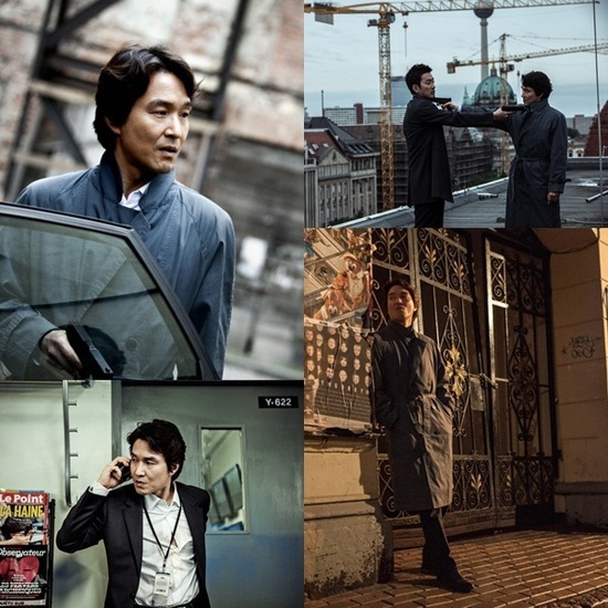 수트에 허리를 질끈 묶은 바바리코트를 입고 베를린의 뒷골목에 서 있는 장면에서는 중후한 매력을 뿜어내고 호텔 총격신에서는 진한 카리스마를 풍기며 꽃중년다운 비주얼을 선보인다.