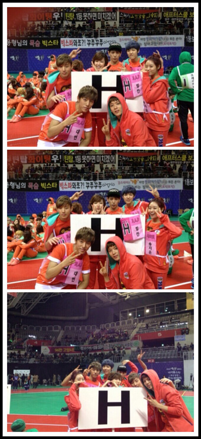 “즐거운 설 되세요! 시크릿과 비에이피가 함께 하는 아이돌 육상 대회도 함께 합시다. 으크” 라는 귀여운 새해인사와 함께 올린 사진에는 소속사 식구끼리 한 팀을 배정해주는 ‘아육대’의 관례에 따라 함께 팀을 이룬 시크릿과 B.A.P의 단체컷이 올라왔다. 이 날 주황에 가까운 화사한 색의 단체복을 함께 착용한 시크릿 송지은과 전효성, 그리고 B.A.P 멤버들은 대부분이 승리의 브이자를 그리고 있어 ‘아육대’에서 이들의 활약에 기대치를 상승시켰다.