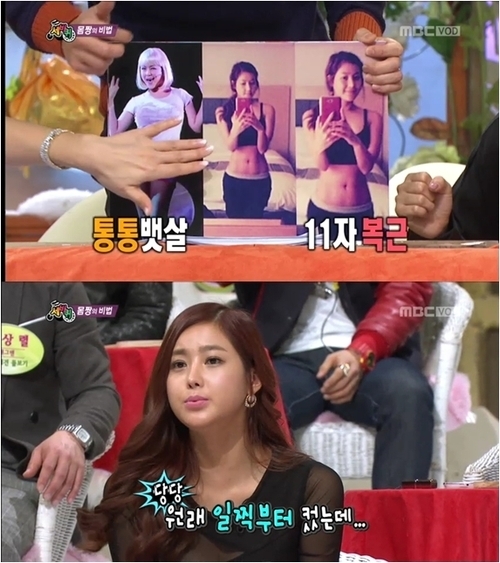솔비는 방송에서 뮤지컬을 할 때 에너지 보충을 위해 많이 먹었고 몸매 관리를 하지 않았다고 털어놨다. 또한 이날 방송에는 솔비의 탄탄한 11자 복근이 공개돼 눈길을 끌었다.