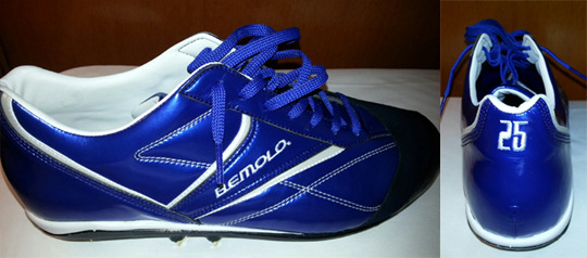 일본 오키나와 2차 전훈 캠프에 참가 중인 배영수는 10일 특수 제작된 스파이크를 공수받았다. 삼성 팀컬러인 파란색 계열의 이 스파이크 뒤꿈치 부분에는 배영수의 배번인 25번이 새겨져 있었다.