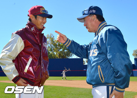 경기전 염경엽 감독과 김경문 감독이 이야기를 나누고 있다. /soul1014@osen.co.kr