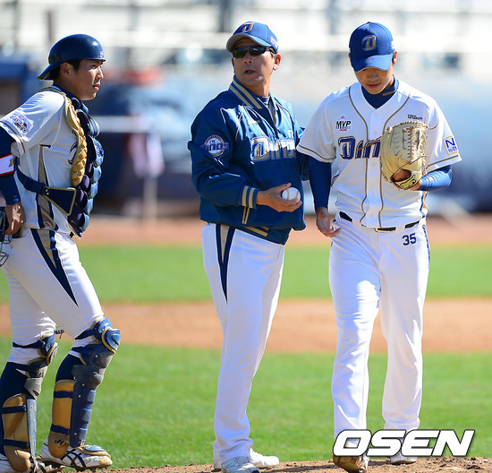 4회초 NC 김일언 코치가 선발투수 이성민을 교체하고 있다 . /soul1014@osen.co.kr