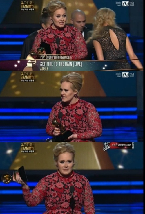팝 가수 아델이 제 55회 그래미 어워즈에서 베스트 팝 솔로 퍼포먼스 상을 수상한 후 동료 뮤지션에게 고마운 마음을 전했다.