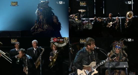 이들의 무대에서 건반 연주자는 인디언 부족 추장들이 쓸 법한 과장된 장식물을 머리에 쓰고 자리했다. 또 브라스 연주자들이 무대 뒤편에 자리해 들썩거리는 분위기를 연출했다.