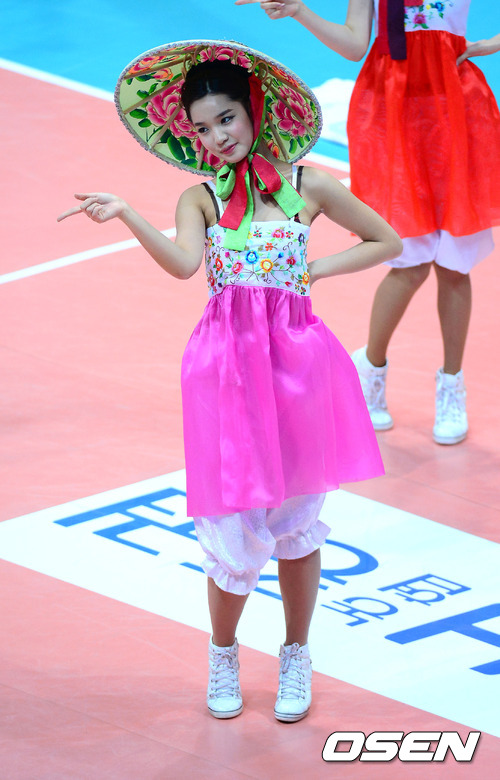 11일 오후 인천 도원체육관에서 열린 '2012-2013 NH농협 V-리그' 남자부 대한항공과 LIG손해보험의 경기, 치어리더가 멋진 공연을 선보이고 있다.