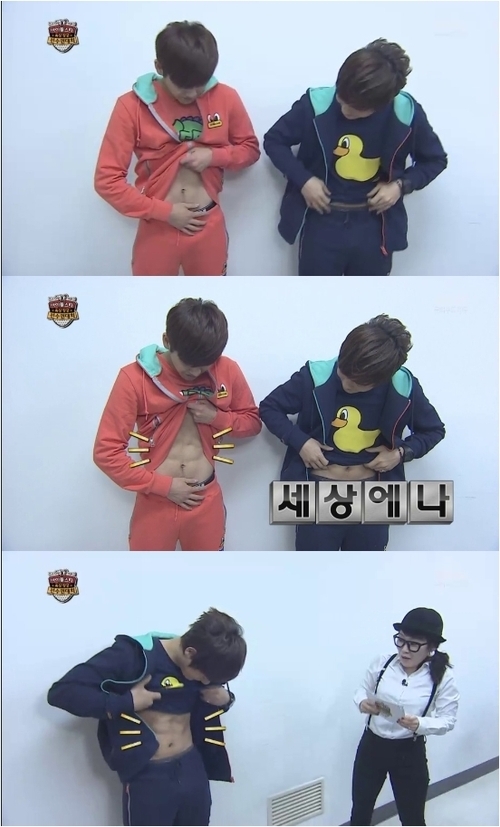 두 사람은 이날 리포터 박슬기의 요청에 복근을 공개했다. 두 사람 모두 탄탄하고 섹시한 복근의 소유자. 이날 방송을 통해 공개된 두 사람의 복근은 시선을 뗄 수 없을 정도로 섹시했다.