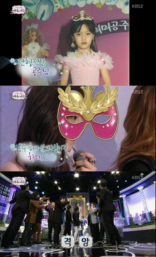 효민은 11일 오후 방송된 KBS 2TV 설 특집 프로그램 '미녀와 야수'를 통해 어린 시절 한 인형 브랜드의 예쁜 어린이 선발대회 참가 당시의 사진을 공개했다. 사진 속 효민은 동그란 눈과 새침한 표정이 인상적인 모습.