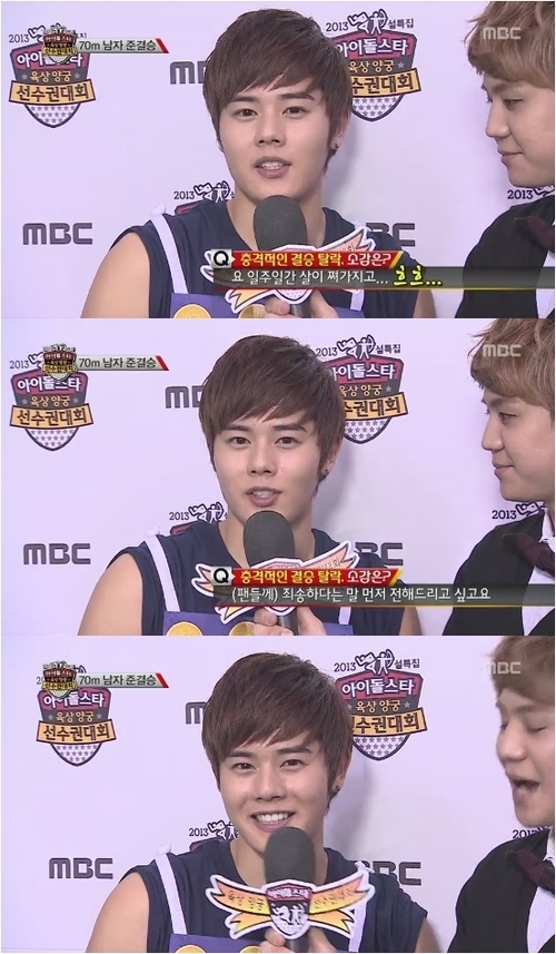 제국의 아이들 멤버 동준이 70m 달리기 준결승전에서 충격의 탈락을 한 이유에 대해 체중증량을 이유로 들었다.