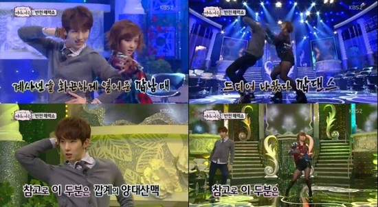 이들은 과장된 표정과 웨이브를 특징으로 하는 코믹 댄스인 일명 깝 댄스로 함께 한 출연자들을 폭소케 만들었다.