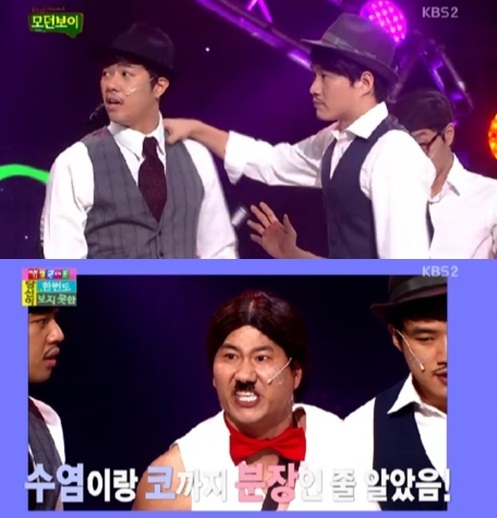 첫 번째로 등장한 코너 ‘모던보이’에는 서태훈, 김기리, 임우일 등이 등장했다. 서태훈과 김기리는 ‘나는 잘 나가는 모던보이’ 노래에 맞춰 콩트를 이어갔지만 미미한 반응을 얻었다.