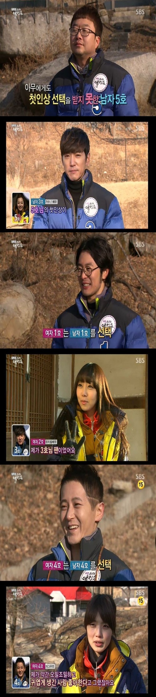 반면 가수 데니안은 선우와 배우 송은채에게 표를 얻어 기쁨의 미소를 지었다. 데니안은 "사실 여자 5호(배우 정소영)이 오길 바랐다"고 속마음을 밝히기도 했다.