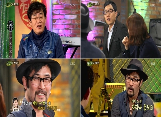 MC들의 다그침에 웃던 최민수는 "주변에 예술하는 동생들이 꽤 있다. 아이들한테 물었다. 노래를 만들었는데 어떻게 해야 돼냐고 물으니 '요즘 '힐링 캠프'가 최고다. 그 프로그램 나가서 노래를 하시면, 대박 터진다'라고 말해 나왔다"고 밝혀 웃음을 자아냈다.
