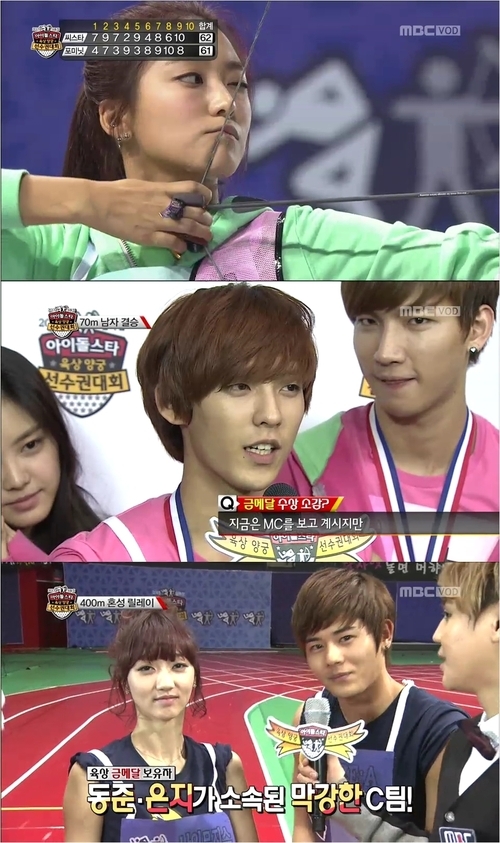 한편 이번 ‘아육대’에서 비투비 은혁이 남자 70m 허들과 달리기에서 두 개의 금메달을 차지하며 신흥 육상돌로 떠올랐다. 여자 70m 달리기는 타이티 지수가 1위를 했으며, 남녀 높이뛰기는 틴탑 니엘과 걸스데이 민아가 우승을 차지했다. 치열한 경쟁을 벌였던 남녀 양궁은 제국의 아이들과 씨스타가 금메달을 획득했으며, 남자 400m 릴레이는 틴탑이 우승을 거머쥐었다.