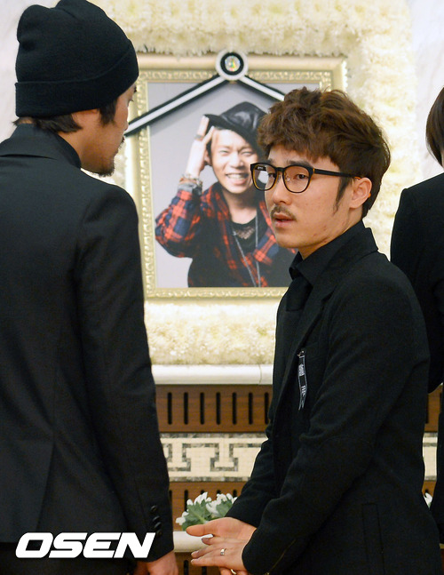 故 임윤택의 빈소에서 조문객들의 조문이 이어지고 있는 가운데 울랄라세션 김명훈이 슬퍼하고 있다.
