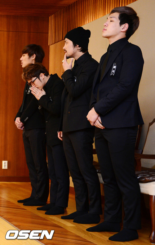 故 임윤택의 빈소에서 조문객들의 조문이 이어지고 있는 가운데 울랄라세션 멤버들이 슬픔을 삼키고 있다.