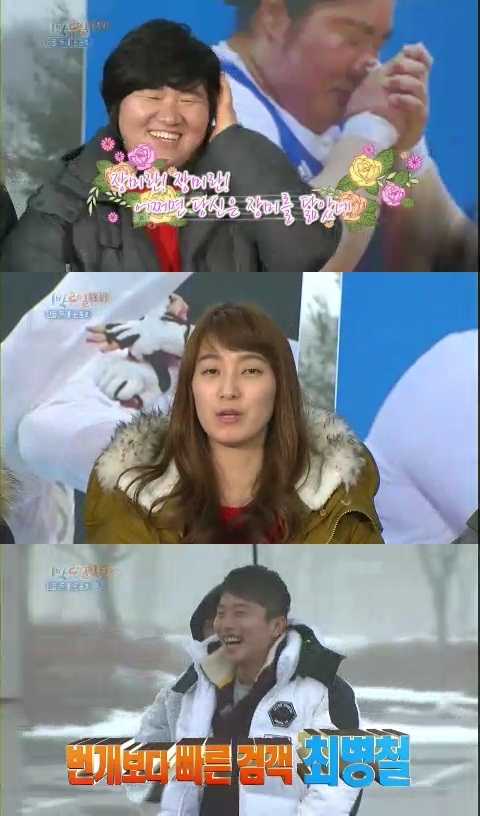 이날 ‘1박2일’에서는 전 역도 국가대표 선수 장미란과 태권도 국가대표 선수 황경선, 펜싱 국가대표 선수 최병철이 출연해 멤버들과 함께 산골 두레 마을로 여행을 떠나는 모습이 그려졌다. ‘1박2일’은 설특집을 맞아 오랜만에 등장한 게스트와 함께 팀을 나눠 게임을 하며 색다른 재미를 선사했다.