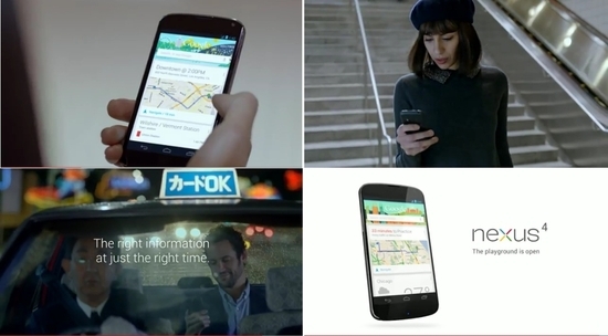 이날 공개된 1분짜리 광고에서 구글은 시카고, LA, 파리 등 세계 각지서 ‘넥서스4’의 구글나우 기능을 이용해 날씨, 통근정보, 식당 위치 등을 확인하고 편리한 삶을 사는 이들의 예를 담았다.