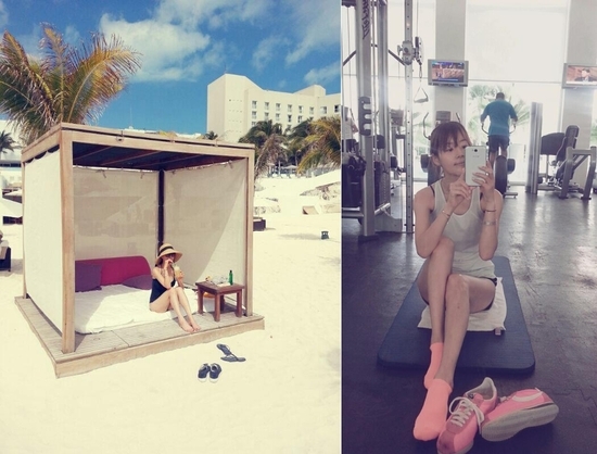 한지혜는 지난 6일과 7일 자신의 페이스북에 각각 "지금은 멕시코 칸쿤", "아침운동! 건강한 여자"라는 글과 함께 두 장의 사진을 올렸다.