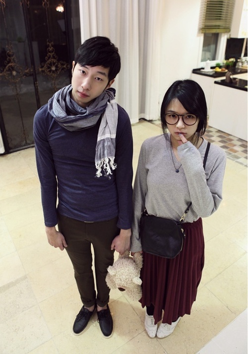싱그러운 그린과 레드 컬러로 후드 집업을 맞춰 입기만 해도 커플의 훈훈한 기운은 어디 가지 않는다. 남자는 짙은 회색, 여자는 포근한 분홍색으로 꽈배기 니트를 코디하는 것도 무난한 선택이다. 브이넥 티셔츠를 입을 때는 같은 디자인이더라도 여자는 스커트와, 남자는 슬랙스와 매치해 분위기를 달리 하는 센스를 보이자.