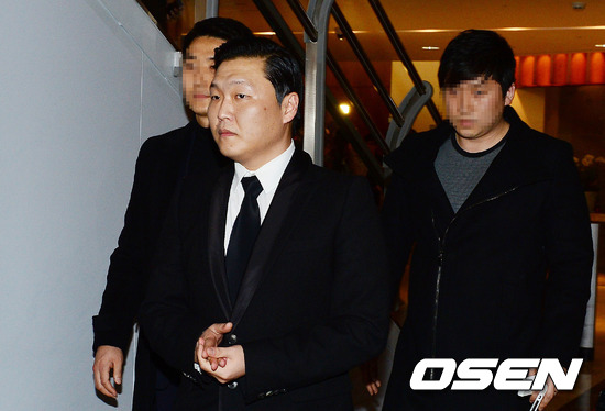 싸이가 故 임윤택의 빈소에서 조문을 마치고 장례식장을 나서고 있다./사진공동취재단