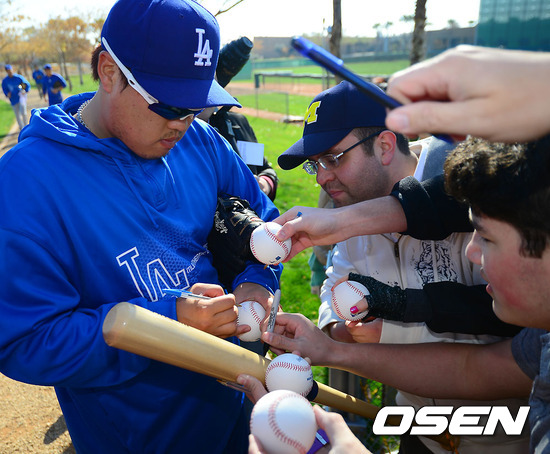 [OSEN=글렌데일(미국 애리조나), 곽영래 기자] 류현진이 13일(이하 한국시간) 미국 애리조나주 글렌데일의 캐멀백 랜치 스타디움에서 열린 다저스 스프링캠프에 합류해 팀 훈련을 가졌다.