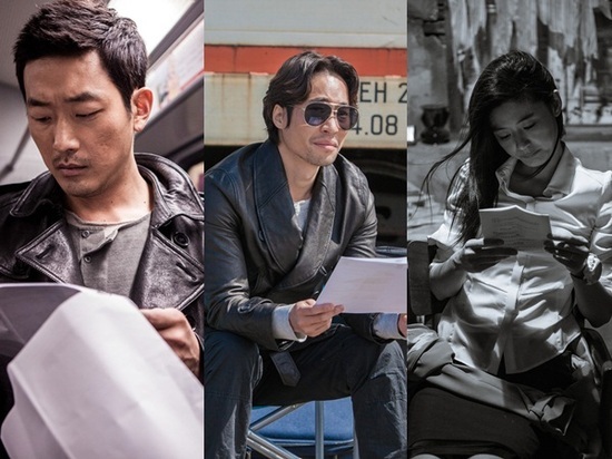 쉬는 시간에도 대본을 놓지 못하는 하정우, 류승범, 전지현에게 진정한 배우의 아우라를 느낄 수 있다. 고난도 액션은 물론 자신의 캐릭터를 완벽하게 소화해 낸 이들의 명품연기는 이처럼 철저한 준비에서 시작됐다.