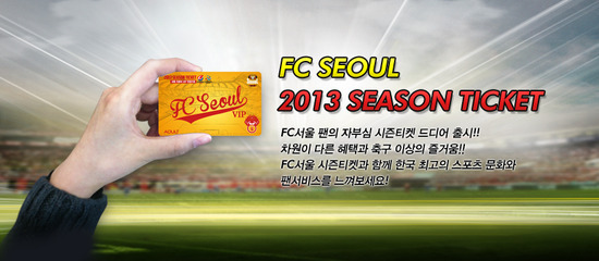 FC서울이 13일 오후 2시부터 공식 홈페이지(www.fcseoul.com)를 통해 ‘FC서울 2013시즌티켓’ 회원 모집을 시작한다.