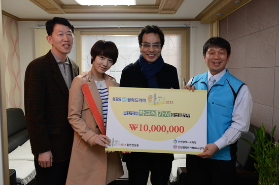 이민홍 PD 등 ‘학교 2013’ 제작진은 오늘(13일) 인천광역시교육청 산하 기관인 ‘행복한 가정 Wee 센터’를 찾아, 특집방송 ‘학교에 가자’ 출연료 전액인 천만원을 기부했다.