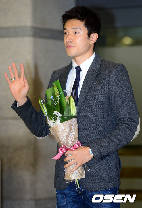 13일 오후 국제올림픽위원회(IOC) 징계위원회에 출석 후 귀국한 박종우가 인천국제공항 입국장에서 취재진들을 향해 손을 흔들고 있다.