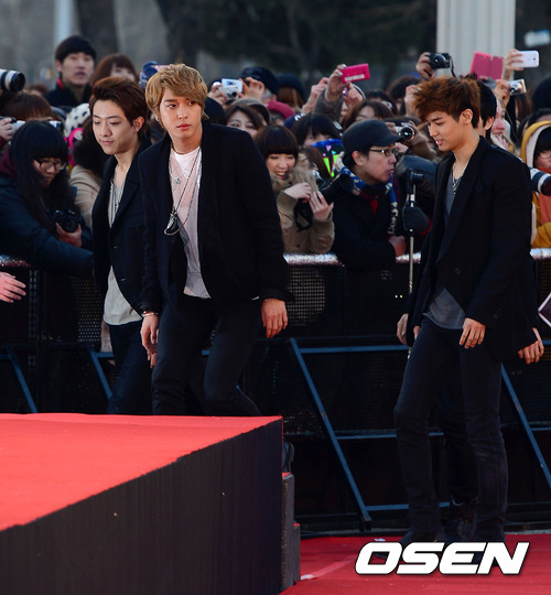 13일 오후 서울 올림픽공원 올림픽홀에서 열린'제2회 가온차트 K-POP 어워드'에서 그룹 씨엔블루가 레드카펫 행사를 갖고 있다.