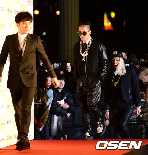 13일 오후 서울 올림픽공원 올림픽홀에서 열린'제2회 가온차트 K-POP 어워드'에서 그룹 빅뱅이 레드카펫 행사를 갖고 있다.