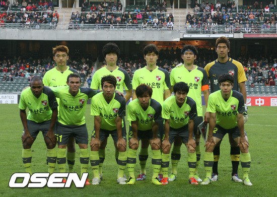 골키퍼 이범영을 수문장으로 내세운 부산은 방승환을 최전방에 내세웠고 이종원, 한지호, 윌리암, 파그너, 김응진이 미드필드진을 구성했다. 뒷선은 장학영, 이경렬, 이정호, 유지노가 받쳐 상하이의 공세를 막아섰다.