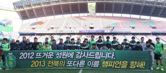 지난 11일 귀국해 3일 동안 휴식을 취한 전북은 14일 전주에 다시 모여 마무리 훈련에 들어간다. 이어 오는 16일 전라북도청 대강당에서 출정식을 갖고 팬들 앞에서 2013년의 목표를 밝힘과 동시에 2013 시즌 공식일정에 돌입한다. 또한 26일 무앙통 유나이티드(태국)와 조별리그 1차전 원정경기에서 전북은 자신들의 닥공+닥수 축구를 선보일 예정이다.