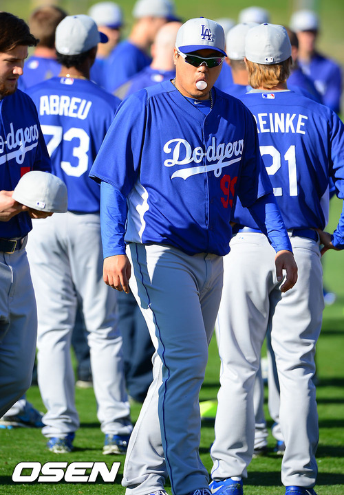 [OSEN=글렌데일(미국 애리조나), 곽영래 기자] LA 다저스의 괴물 투수 류현진이 13일(현지시간) 미국 애리조나주 글렌데일의 캐멀백 랜치 스타디움에서 열린 다저스 스프링캠프에 합류해 팀 훈련을 가졌다.