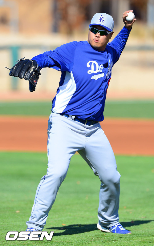 [OSEN=글렌데일(미국 애리조나), 곽영래 기자] LA 다저스의 괴물 투수 류현진이 13일(현지시간) 미국 애리조나주 글렌데일의 캐멀백 랜치 스타디움에서 열린 다저스 스프링캠프에 합류해 팀 훈련을 가졌다.
