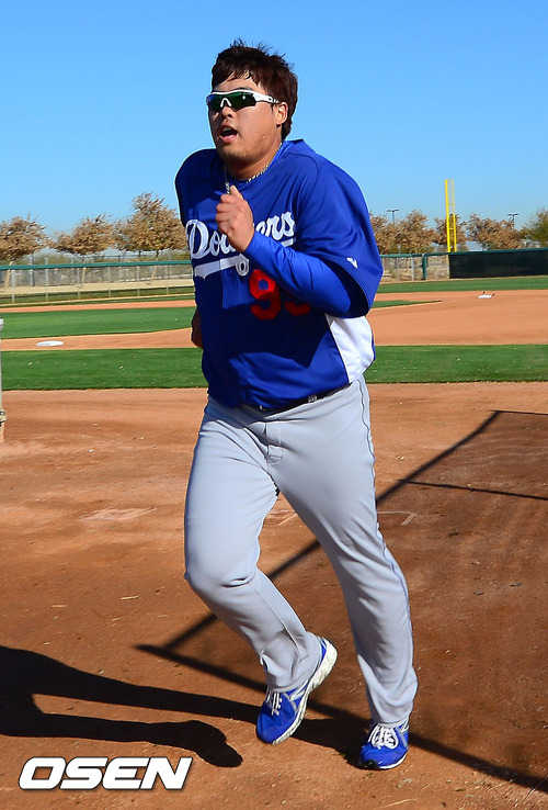 [OSEN=글렌데일(미국 애리조나), 곽영래 기자] LA 다저스의 괴물 투수 류현진이 13일(현지시간) 미국 애리조나주 글렌데일의 캐멀백 랜치 스타디움에서 열린 다저스 스프링캠프에 합류해 팀 훈련을 가졌다.