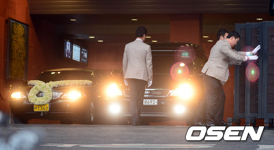 14일 아침 서울 신촌동 신촌 세브란스병원 장례식장에서 故 임윤택의 발인식이 진행된 가운데 운구 차량이 장례식장을 빠져나오고 있다.