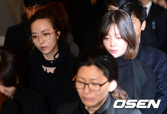 14일 아침 서울 신촌동 신촌 세브란스병원 장례식장에서 故 임윤택의 발인식이 진행된 가운데 심은진(왼쪽)과 백승희가 영정사진을 뒤따르고 있다.