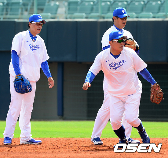 대표팀은 14일 오전 도류구장에서 첫 상황별 수비훈련(PFP)를 실시했다. 역시 펑고배트를 잡은 이는 유 코치, '1사 2루'나 '무사 만루' 등 주자 상황을 투수에게 미리 말하고 타구를 굴려 수비 대처요령을 몸에 익히는 훈련이다. 반복 숙달로 선수들의 몸이 기억을 해야 하기에 꽤나 비중이 높은 훈련. 투수를 중심으로 내야수 전원이 참가해야 하는 훈련이기에 팀워크를 다지는데도 좋다.