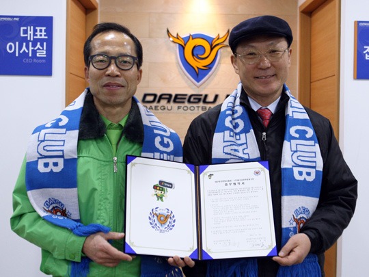 대구FC(대표이사 김재하)가 14일 오전 10시 대구FC 사무국에서 대구 운전면허시험장(장장 김인규)과 업무협약을 체결했다.