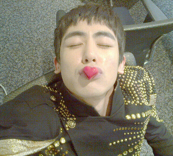 그룹 2PM의 닉쿤이 밸런타인 데이를 맞아 하트 모양 사탕을 입에 문 사진을 공개했다.
