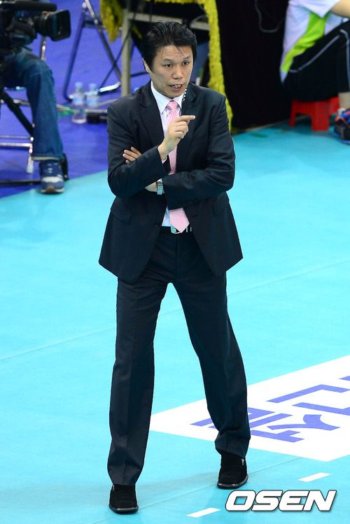 14일 오후 수원 실내체육관에서 열린 '2012-2013 NH농협 V-리그' 여자부 현대건설과 흥국생명의 경기 1세트 흥국생명 신동연 감독대행이 선수들에게 지시를 하고 있다.