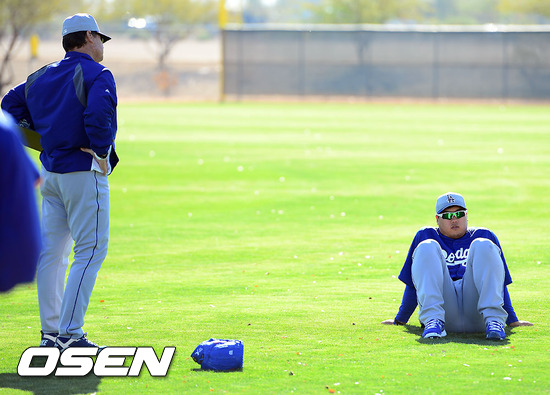 [OSEN=글렌데일(미국 애리조나), 곽영래 기자] LA 다저스의 괴물 투수 류현진이 14일(현지시간) 미국 애리조나주 글렌데일의 캐멀백 랜치 스타디움에서 열린 다저스 스프링캠프에서 팀 훈련을 가졌다.