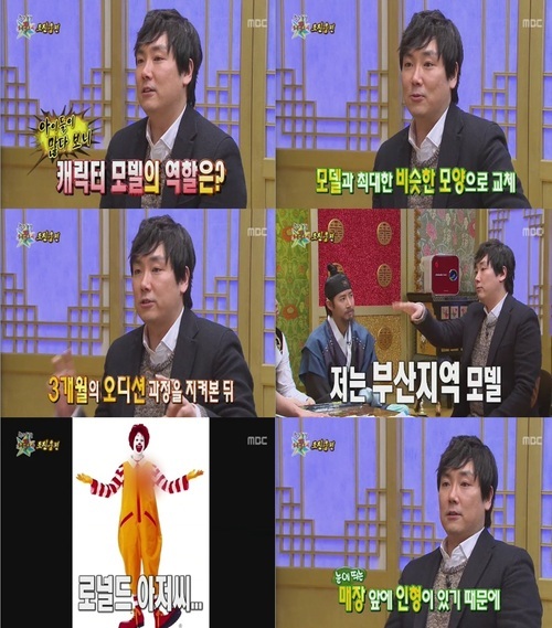 또한 그는 과거 유명 햄버거 프랜차이즈 M사의 캐릭터 모델인 로널드 아저씨로 활동했었던 과거를 밝히며 무명 시절 생계를 위해 다양한 아르바이트를 해야했던 사연을 설명해 눈길을 끌었다.