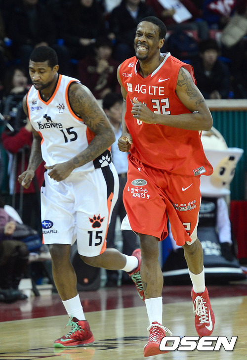15일 오후 서울 잠실학생체육관에서 열린 'KB 국민카드 2012-2013 프로농구' 서울 SK와 인천 전자랜드의 경기 4쿼터 SK가 득점하자 헤인즈가 미소를 짓고 있다.