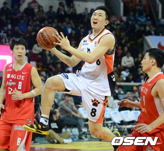 15일 오후 서울 잠실학생체육관에서 열린 'KB 국민카드 2012-2013 프로농구' 서울 SK와 인천 전자랜드의 경기 4쿼터 정영삼이 수비들 사이로 슛을 시도하고 있다.