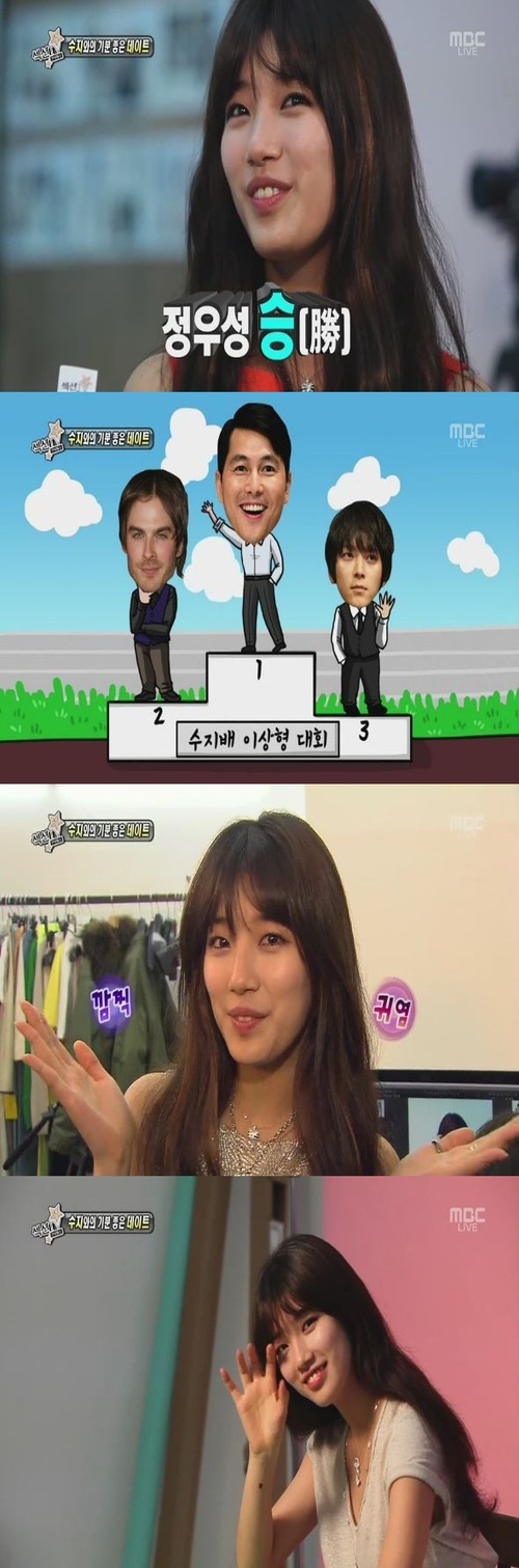 그룹 미쓰에이의 수지가 "내가 좋아하는 이안 소머헐더 보다 정우성이 더 좋다"고 밝혔다.