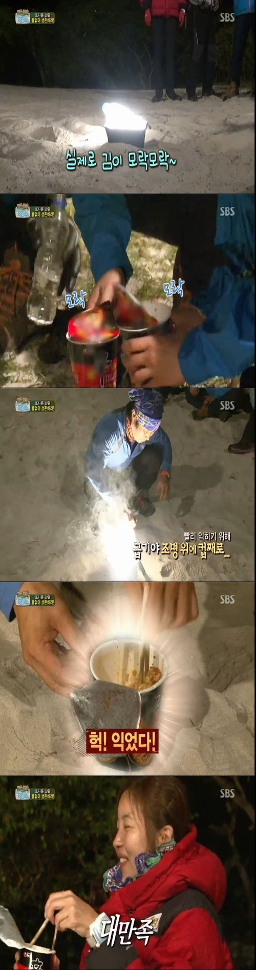 시간이 지나자 물이 뜨거워졌고 컵라면을 익히는데 성공했다. 솔미는 "한국에서 컵라면을 먹지 않는데 이것은 정말 맛있다"며 엄지 손가락을 치켜 세웠다.